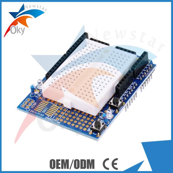 ProtoShield prototype expansion board, used to build the circuit prototype, can be directly on the board welding components, can also be through the top of the mini bread plate connection circuit. Bread plate and the circuit board by a double-sided adhesive connection, sold the bread board and the circuit board are separated.